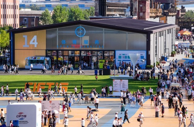 2025年9月14日,人们在北京首钢园2025年服贸会展馆间行走。新华社记者 陈晔华 摄