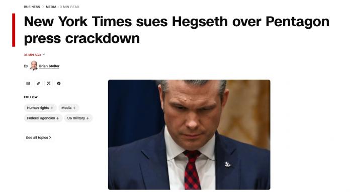 《纽约时报》起诉赫格塞思